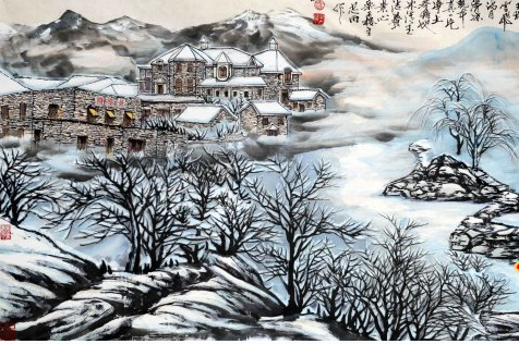马忠田老师的山水画,多取材于太行山脉和祖国的名山大川、江河湖海、长城黄河,可说是取材广泛、丰富自然,且笔精妙墨、峭拔滋润、层峦叠嶂、丘壑深邃。其中,既有江南小桥流水、天工造化之灵秀,又具北方风骨凛然、粗犷雄奇之美。有的清秀侈逸,有的气势磅礴。总之,体面了其恩师何海霞、李颖的笔力沉稳、厚重、拙朴,雄强博大、神遇迹化、心境契合的艺术风格。