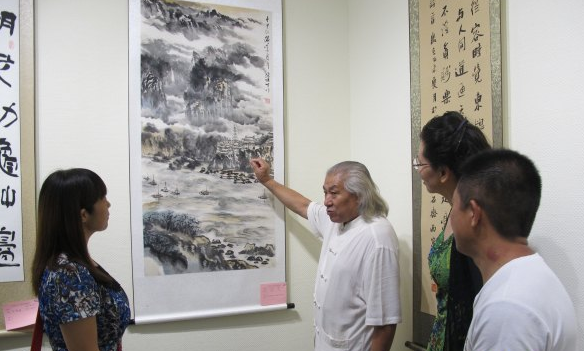 8月7日上午,河北省美术馆人头攒动,展厅正面墙上,红底黄字的巨幅横幅,“爱我中华书画名家精品展——纪念中国人民抗日战争暨世界反法西斯战争胜利70周年”的大字,熠熠闪烁。这是河北省新闻工作者协会、河北省报业协会、河北画院、河北省新闻书画家协会、曲周文化艺术研究院联合举办的展览在这里拉开帷幕。