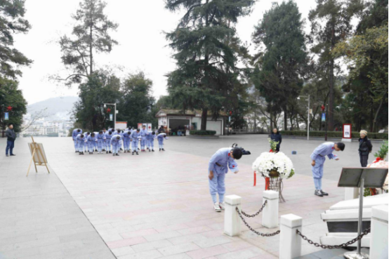 星星之火之所以能够燃遍全国,最根本的就是靠“革命理想高于天”。当年红军鏖战的红花岗浸染了无数鲜血,今天,站在遵义凤凰山烈士陵园的土地上,学员们向逝去的革命先烈敬献花篮,鞠躬缅怀!
