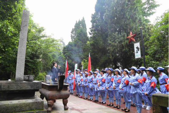 全体学员在凤凰山烈士纪念碑前,向烈士们敬献花篮,并面向党旗,握起右拳,以重温入党誓词的方式缅怀革命先烈、激励昂扬斗志。