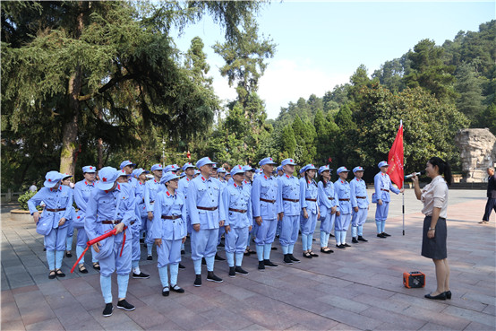 每一处革命遗址就是一座“精神地标”,每一段革命史实都是一部生动的理想信念教材。带着对历史的探寻,怀着对先辈的崇敬和缅怀之情,学员们第一站走进了凤凰山烈士陵园,深切缅怀为了革命事业壮烈牺牲的先辈们,向先烈们敬献花篮,默哀、鞠躬,并面向纪念碑和庄严的党旗,重温入党誓词。宣誓的声音久久回荡在烈士陵园上空,短短12句话,80个字,表达了学员们对党的坚定信念,以及继承先辈遗志、弘扬长征精神的决心和意志。