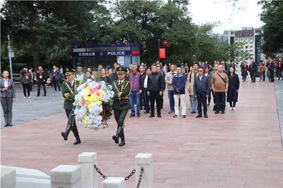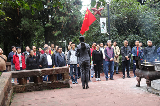 在烈士陵园,党员们怀着无比崇敬的心情在纪念碑前向革命先烈敬献花篮并重温了入党誓词。