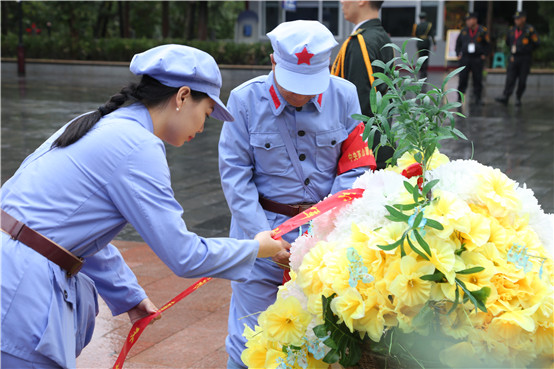 全体学员在烈士纪念碑下鞠躬默哀,表达对革命先辈的缅怀之情,敬佩之意。