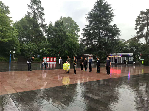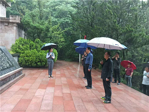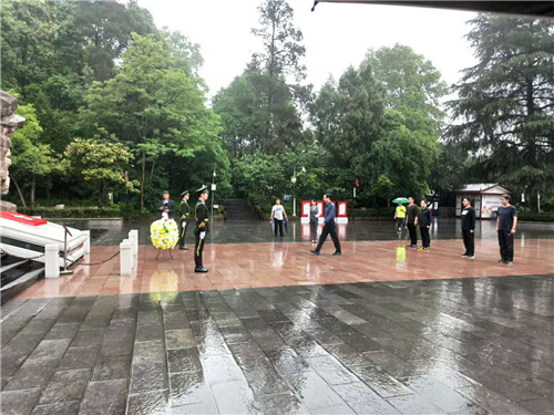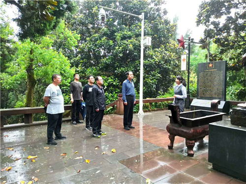 上午7时许,江苏省军区司令员张黎鸿一行在遵义市委常委、军分区政委文木海的陪同下,冒雨来到这里瞻仰红军烈士纪念碑,举行敬献花篮仪式。