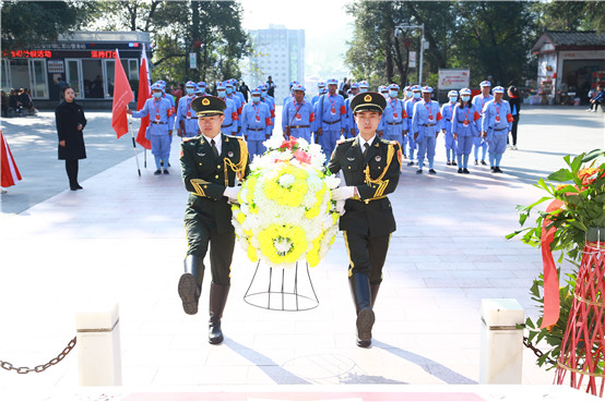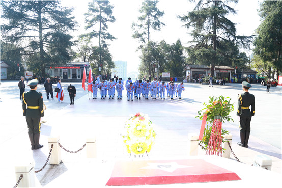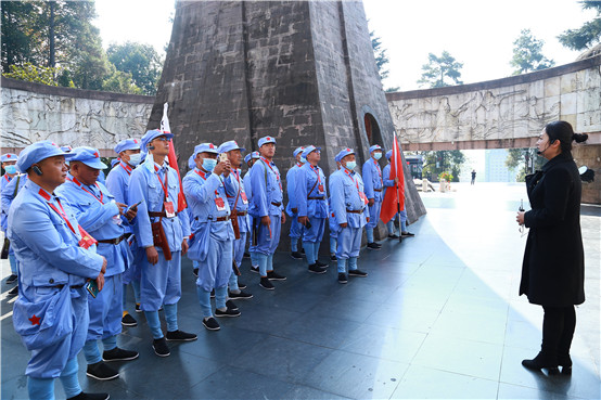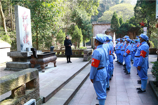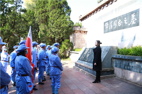 学员们走进红军山烈士陵园,在烈士陵园内,学员们怀着崇敬的心情整齐列队、弯腰鞠躬、满含深情地向烈士纪念碑敬献花篮,表达对革命先烈的无限追忆与敬仰。随后学员们还重温入党誓词,更加坚定自身的理想信念。