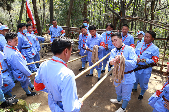 在红军山小道上,学员们重走革命先辈的长征路,一起唱红歌,学会如何包扎伤口,制作简易担架运送伤员等,通过实践亲身体验革命先辈的革命历程,更加珍惜如今生活的来之不易。