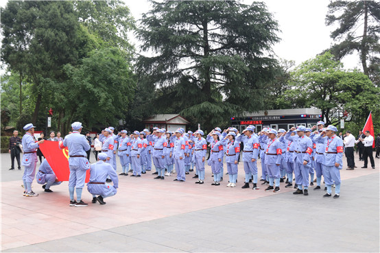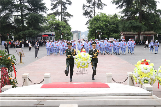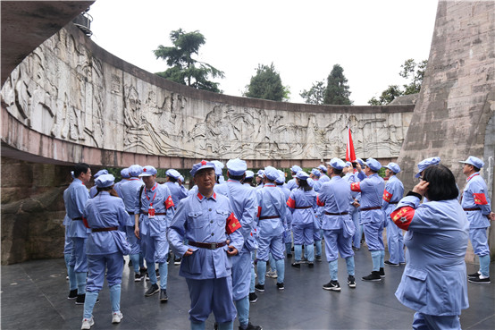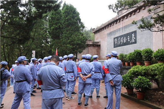 学员们来到红军山烈士陵园。园内集中了新中国成立后在遵义各处找到的红军遗骨。庄严肃穆的烈士陵园内,红军战士的雕像被青山翠柏环绕,陵园正面的纪念碑上有“红军烈士永垂不朽”8个金色大字。在庄严的献花曲中学员们向纪念碑敬献花篮,并重温入党誓词。