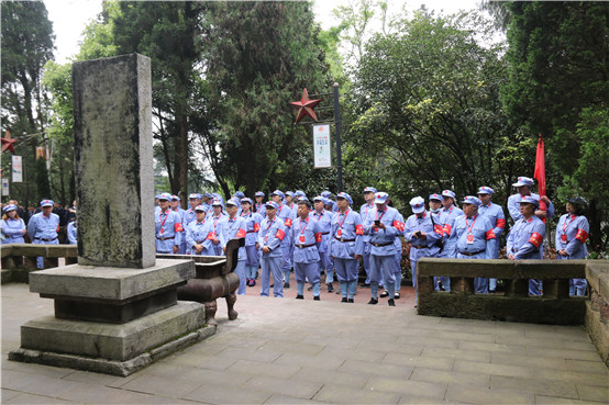 学员们来到了土城,参观青杠坡战斗遗址、四渡赤水纪念馆。青杠坡战斗是红军在遵义会议召开之后,由毛泽东重掌军事指挥权之后的一次大型战争。同时也是中央红军长征四渡赤水的发韧地,青杠坡战斗拉开了红军“四渡赤水”战役的序幕,“四渡赤水”的浓墨重彩,不仅在于它是军事意义上的光辉典范;更在于它是党和红军在逆境中政治上、思想上、组织上走向成熟的重要标志。
