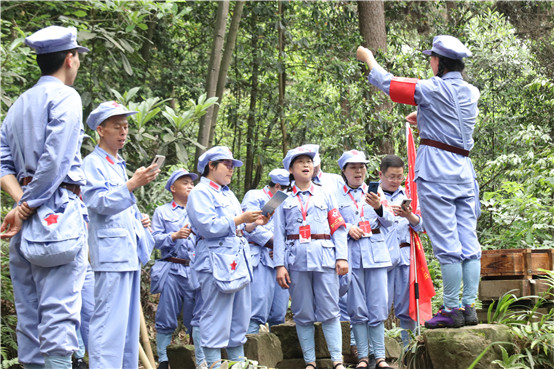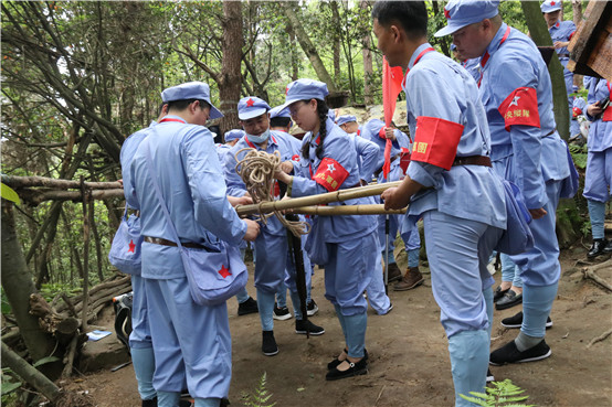 在红军山小道上,学员们纵情放歌,用歌声抒发时代豪情,诠释对党的忠诚、对人民的赤诚。同时,学员们在讲解员的指导下,还学会了包扎伤员、制作简易担架、运送受伤队员下山等,进一步提高团队凝聚力、合作精神。