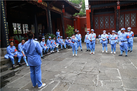 学员们走在红军山的小道上齐唱红歌,情绪高昂。在小道上,学员们还一起学习如何包扎伤员,制作简易担架等,进一步提升团队写作精神,感悟先烈们的革命历程。