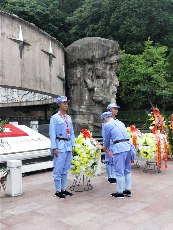 为了纪念在遵义战役中牺牲的红军烈士,遵义市人民政府在红军山修建红军烈士公墓,学员们来到此地,对着烈士陵园庄重的鞠躬,敬献花篮,以表对革命先辈们最深刻的缅怀。