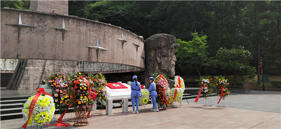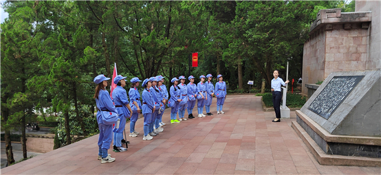 巍巍凤凰山上埋英骨,悠悠湘江水中映红心。红军山上,苍松翠柏,青黑色墓碑上的红星格外耀眼,学员们垂手肃立,向纪念碑深深三鞠躬,以此,向每一位民族独立、国家富强而牺牲的英雄致敬。