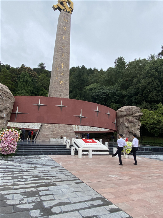 简短而庄重的开班仪式结束后,来到红军山烈士陵园,两名礼兵托起花篮,礼步缓缓走向烈士纪念碑,将花篮摆放在烈士纪念碑基座前,墓园幽静而和煦。随后在党旗的见证下,学员们重温了自己对党忠诚的铮铮誓言,表达了“不忘初心、牢记使命”的信念和决心。