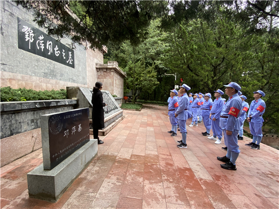 随后学员们瞻仰了各个烈士墓,这里埋葬着建国后在遵义各处找到的红军遗骨。整个陵园青松翠柏,一座巨大的红砂石墓茔掩映在万绿丛中,里面安葬着红三军团参谋长邓萍同志的骨灰。