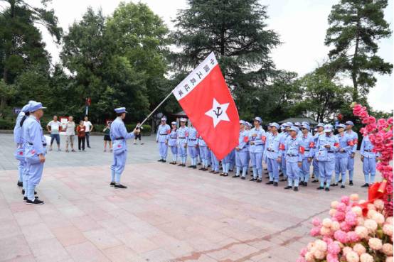 “红军山”上,学员们瞻仰烈士陵园,敬献花篮,聆听邓萍烈士和红军战士的英勇故事;重温入党誓词,深切感受八十二年前中国共产党人的坚定信念和崇高理想。