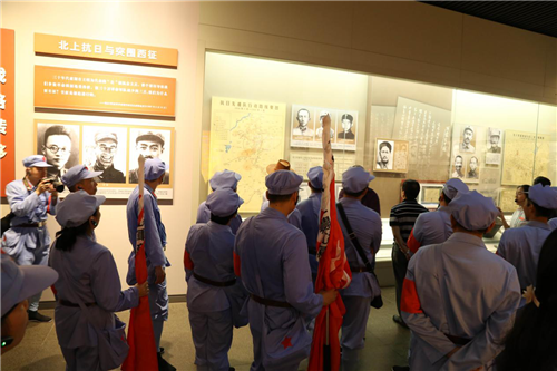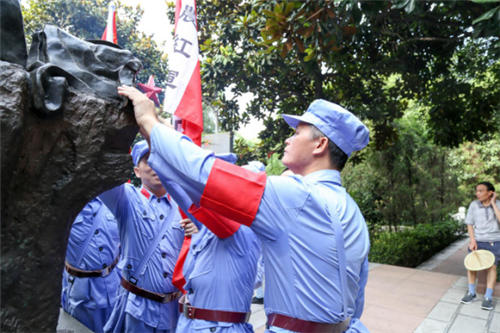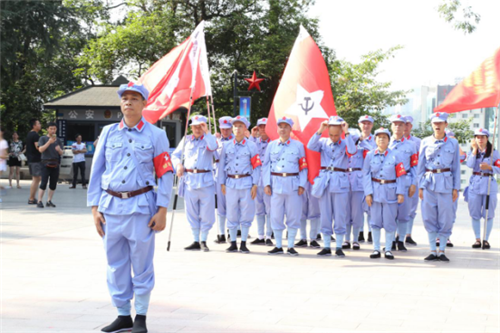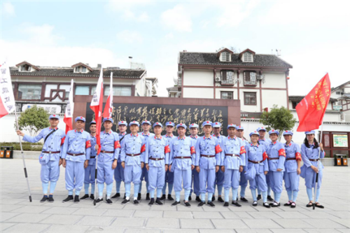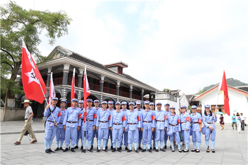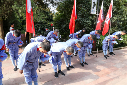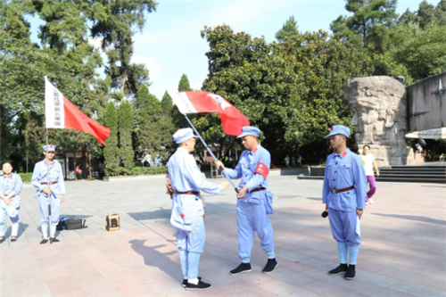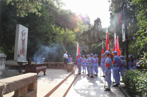 隔着80多年的时间帷幕,学员垂首肃立、用情感受,向邓小平题写“红军烈士永垂不朽”的烈士纪念碑敬献花篮、垂首默哀。