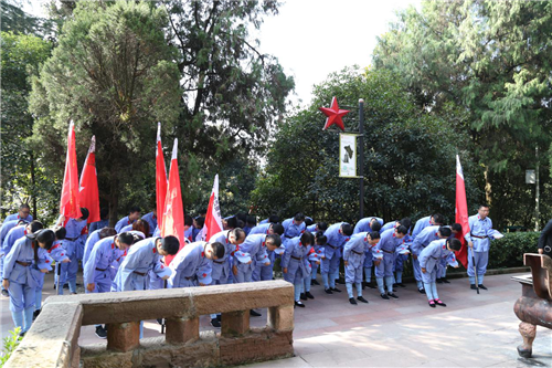 在红军山上,通过由缅怀革命先烈敬献花篮、重温入党誓词等组成的活动,唤醒党员意识,牢记党员身份,增强党性观念,进一步提升党内组织生活成效。